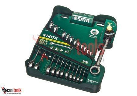 Zestaw 76 szt. kluczy nasadowych 1/4" i 1/2" oraz płasko-oczkowych kutych metrycznych SATA 09519