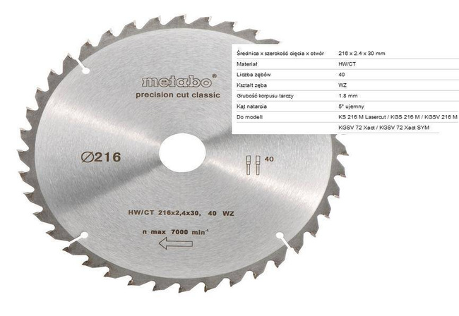 PIŁA TARCZOWA HW/CT 216x30mm 40-ZĘBÓW
