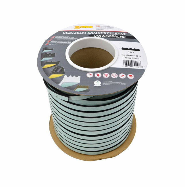 Uszczelka samoprzylepna z gumy porowatej na bazie kauczuku EPDM.