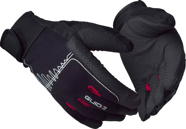 - Rękawice antywibracyjne o doskonałej przyczepności, czułości dotykowej i doskonałym dopasowaniu. Wyposażone w GUIDE VIBRO ™, materiał na bazie pianki, który zapewnia doskonałą ochronę przed wibracjami. Wewnętrzna strona dłoni i końcówki palców wzmocnione