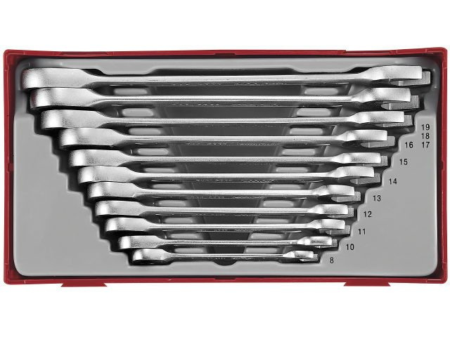 - Wysokiej jakości klucze płasko oczkowe z grzechotką (klucze zapadkowe) w rozmiarze od 8 mm do 19 mm (11 szt.) szwedzkiego producenta Teng Tools1 86750105. Klucze objęte dożywotnią gwarancją producenta na wady baryczne i materiałowe.