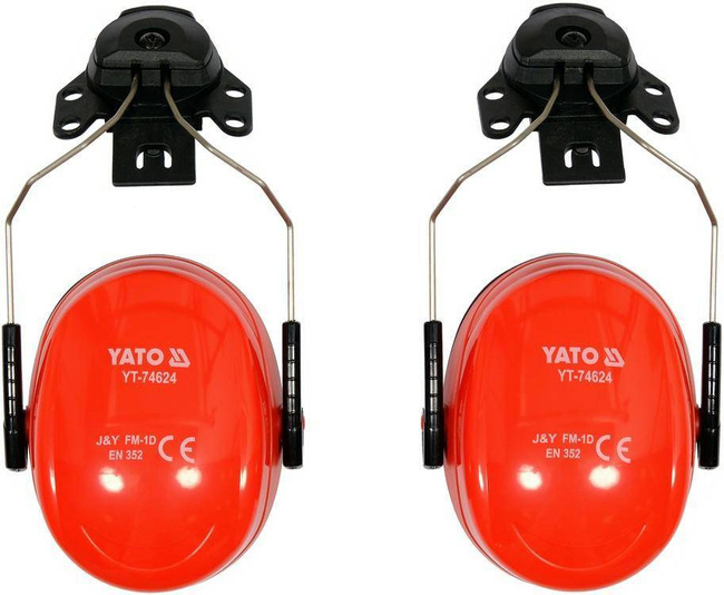 - Nauszniki przeciwhałasowe YT-74624 z mocowaniem na kask. Obrotowy adapter umożliwia zamocowanie do kasków ze szczeliną o szerokości minimum 25 mm. Pasuje do kasków marki YATO o numerach indeksów od YT-73970 do YT-73975 (szczelina 29 mm) oraz VOREL o numer