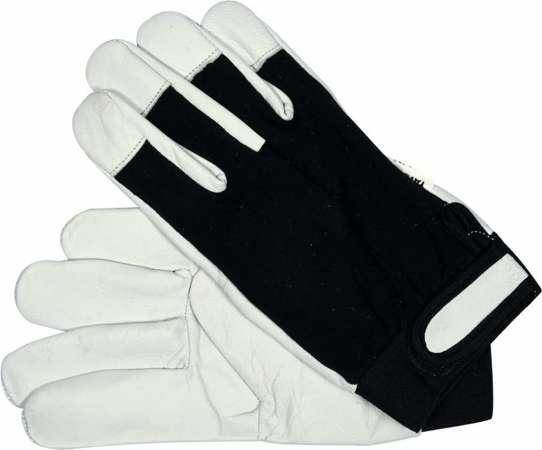 - Rękawice robocze lekkie YT-74640 wykonane z miękkiej skóry naturalnej oraz dzianiny bawełnianej w kolorze czarnym.