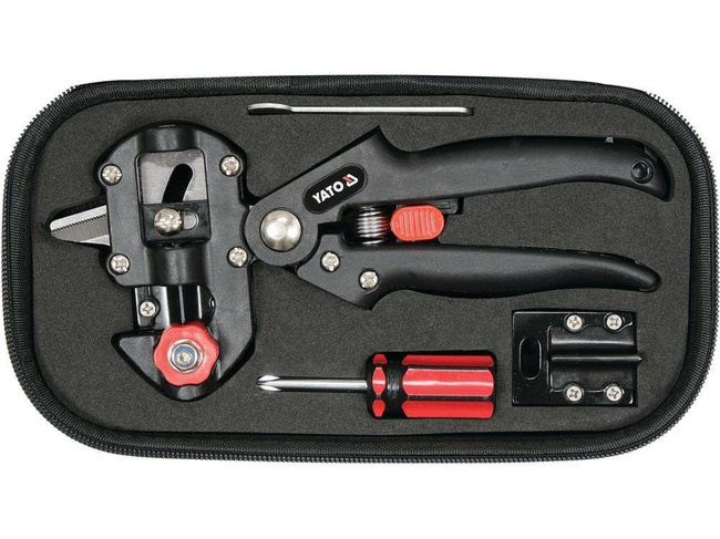 Sekator do szczepienia drzewek, krzewów i winorośli oraz do wykonywania precyzyjnych cięć. Wysokiej jakości ostrze pozwala na uzyskanie gładkiej powierzchni cięcia. Mechanizm blokujący ostrze gwarantuje bezpieczeństwo podczas pracy. Ergonomiczny uchwyt zapewnia komfort użytkowania. Sekator wraz z akcesoriami - umieszczony jest w trwałym futerale.