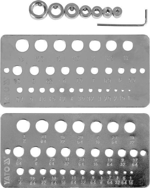 - Zestaw 10 szt. składa się z dwóch stalowych płytek z otworami do kontroli średnic.