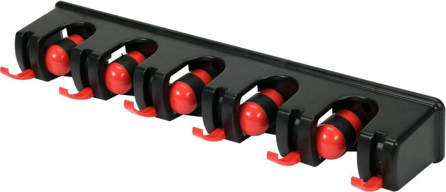 Praktyczny naścienny wieszak na narzędzia ogrodowe i domowe. Posiada 5 automatycznych uchwytów dopasowujących się do grubości trzonka oraz 6 haczyków. Dociski uchwytów są sprężynowe co pozwala wygodnie zawieszać i wyciągać narzędzia. Haczyki można złożyć idealnie licując je z powierzchnią wieszaka.